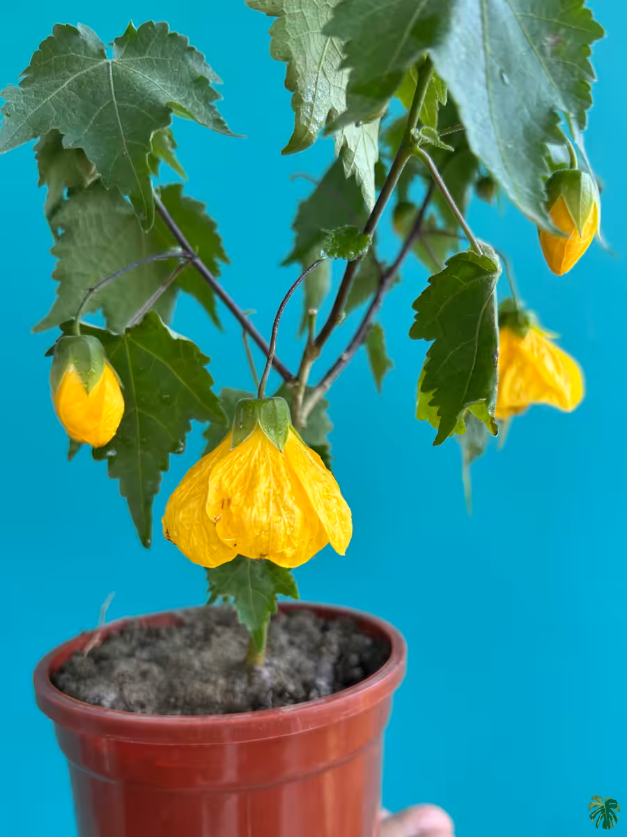 Cultivating this dwarf Flowering Maple is a straightforward and rewarding experience. It thrives in bright sunlight, preferring the gentle morning rays while requiring protection from the harsh afternoon heat to keep its foliage looking pristine. Plant it in a rich, evenly moist, and well-draining potting mix, ensuring the soil never completely dries out. With a light trim when young and after blooming to encourage strong basal branching, this naturally rounded, radiant shrub will continue to reward you with a profusion of golden blooms season after season.