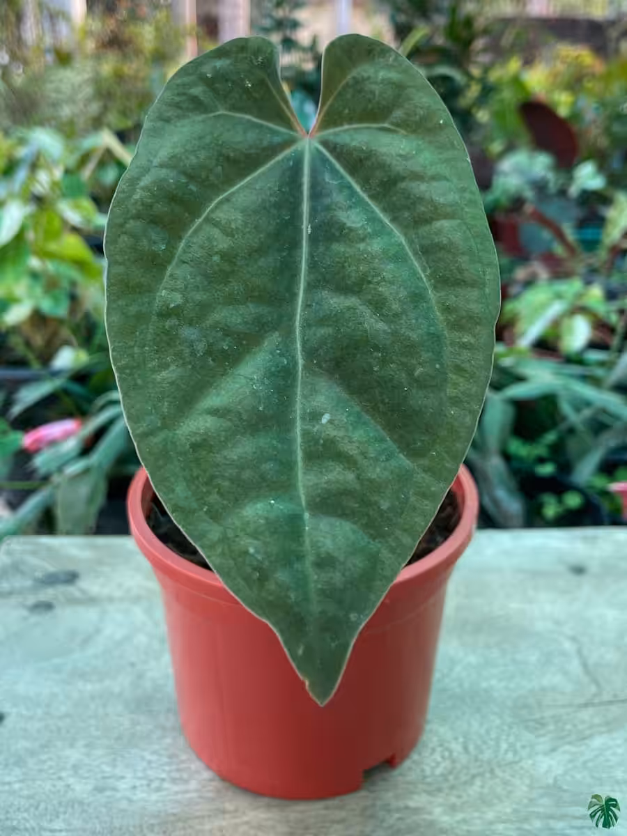 This is the original Anthurium Ace of Spades, not a hybrid, with attractive glossy and velvety leaves, which all the aroid-lovers want to have in their collection.