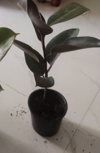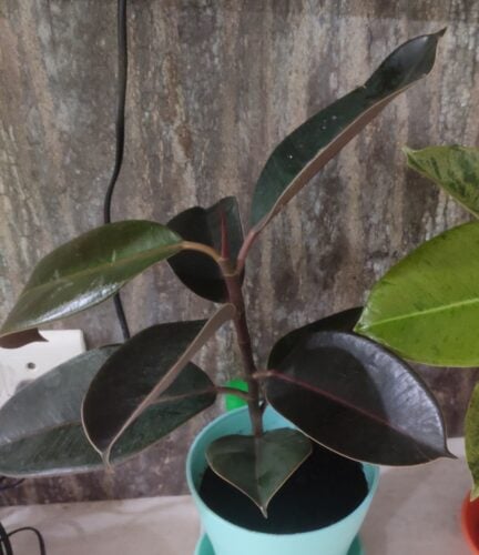 ‘Black Prince’ Rubber Plant or Ficus Elastica Burgundy has very dark green glossy leaves, the stems and underside of the leaves have a burgundy tone. It is one of the best air purifying plants. It is great at removing toxins from the air, and will survive infrequent watering and low light.
