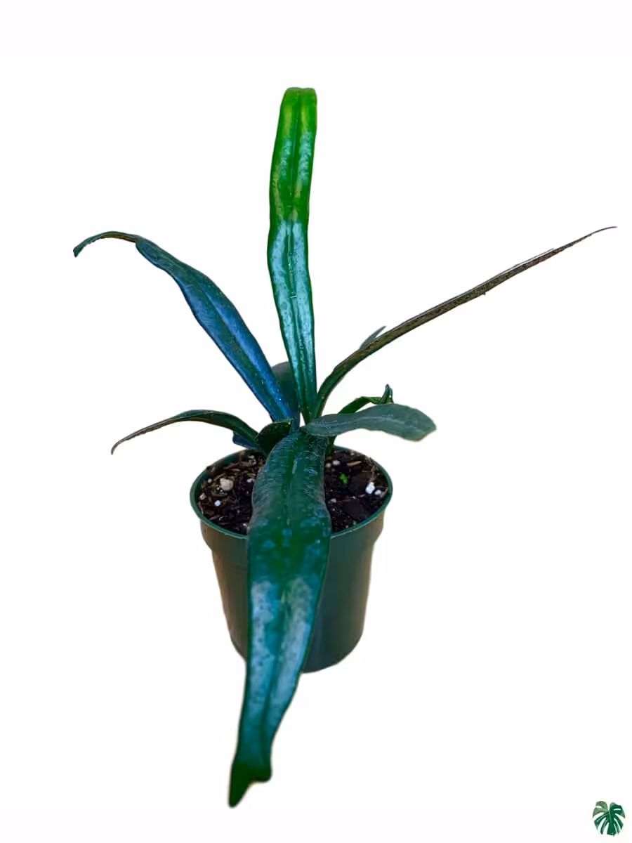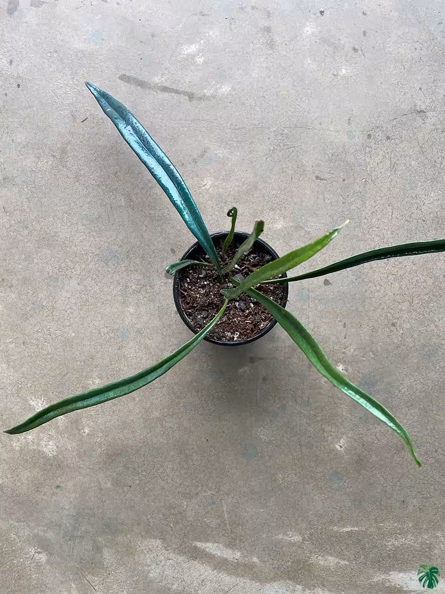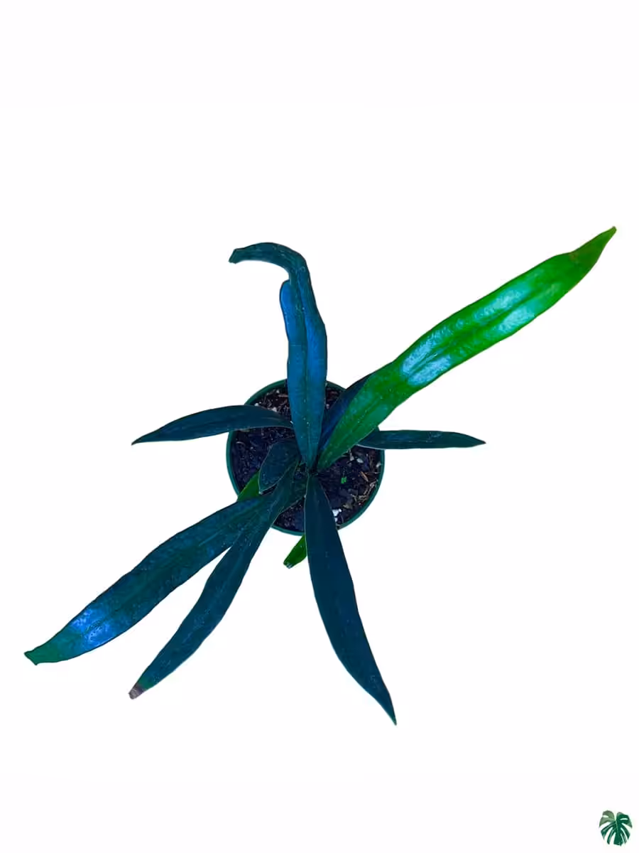 The blue oil fern is a species of lithophytic and epiphytic fern native to Southeast Asia ranging from Thailand, Southern China, and Vietnam. This stunning fern produces thick, iridescent, teal coloured foliage that appears almost holographic under bright light. Extremely hard to come by and very rarely offered. Also known as Microsorum Thailandicum, it comes from shaded, humid, jungles in limestone regions, where the blue leaves serve as an adaptation to capture more light in these low light understory conditions.