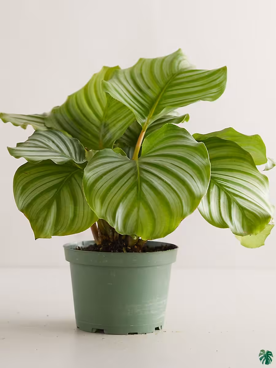 The Calathea Orbifolia is offers everything you’re looking for in a green indoor plant. It needs no introduction. A classic Calathea, this stunning specimen will grow larger than most Calatheas. It boasts large rounded leaves with contrasting stripes along its veins. Add a classic, soft touch to any indoor space with one of these beauties. It’s easy-care, air-purifying and a real looker with beautiful foliage.