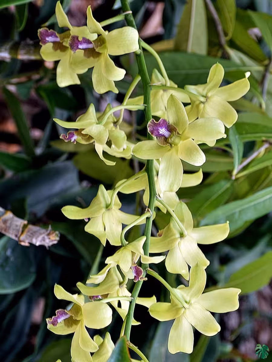 Dendrobium Burana Jade features a sturdy stem with scales and leaves from which emerges a candle of idiosyncratic flowers. The structure means that this orchid has an attractive full look. It’s a houseplant that really does offer value for money.