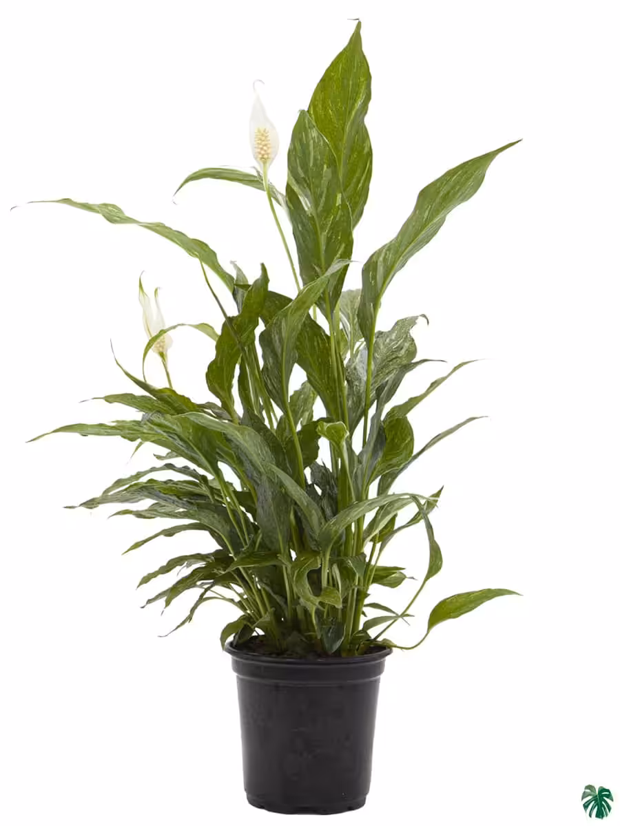 Spathiphyllum is a genus of about 40 species of flowering plants commonly called ‘Peace Lily’. ‘Peace Lily’ is an herbaceous perennial typically grown as a houseplant. While it can grow up to 6 ft tall, it more typically grows to 3 ft in an indoor setting. It is popular as a specimen or accent in interior groupings for its deep-green glossy foliage and white blooms that are intermittent in medium lighting and long-lasting. The plant has no specific bloom times, but flowers freely and tolerates heavy shade.