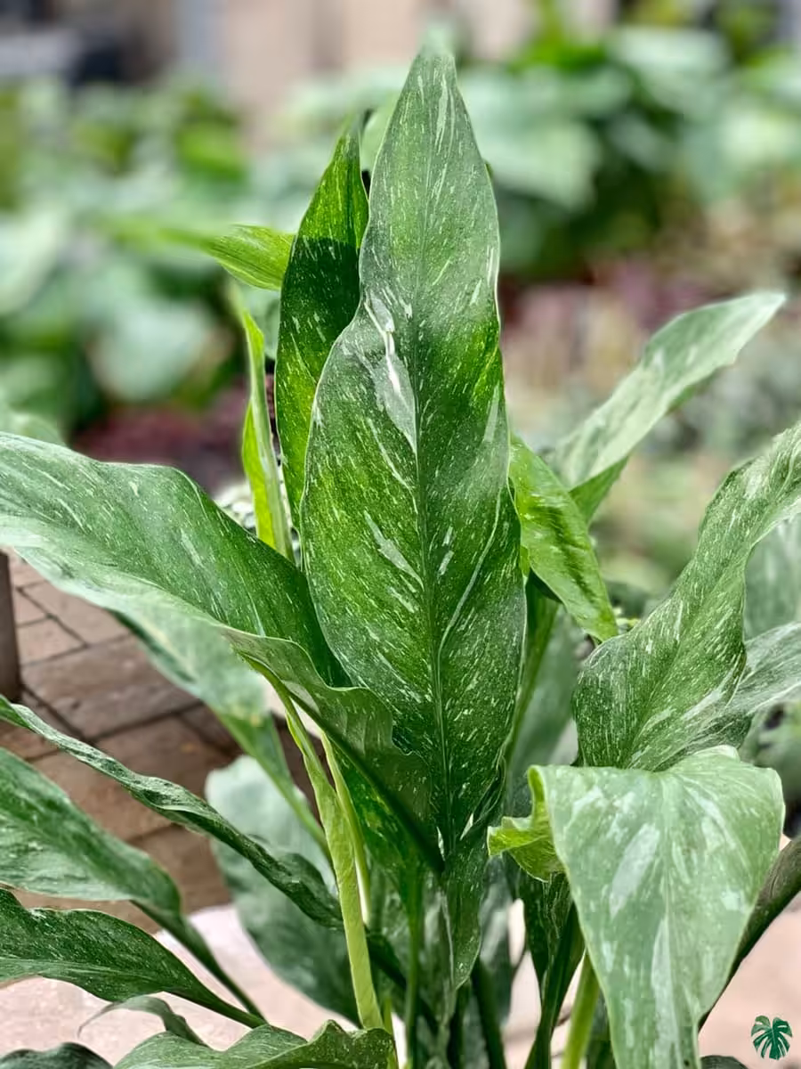 The large and lush leaves of Domino Peace Lily, commonly known as Spathiphyllum Domino or Variegated Peace Lily, are a show stopper!
