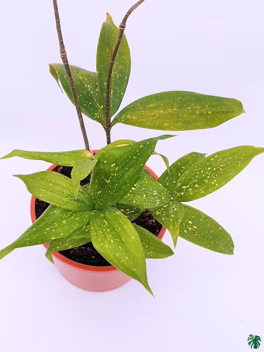 This slow-growing evergreen plant is typically grown as a house plant for its stunning variegated foliage and tropical look. The thin branches of Dracaena Surculosa, Gold Dust Dracaena, produce leaves that are dark green with spots of cream. New leaves appear as tightly rolled cones. Trim old stems occasionally to rejuvenate growth and to keep the plant at the desired height.