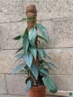 Epipremnum Cebu Blue is a tropical aroid species found mostly in Asia. It is sold with the smaller leaves which we recognize it from. But if you give this beautiful fast growing plant a chance to climb, you will be surprised with the production of leaves. The leaves turn more blue and start to produce fenestration. We advice a moss stick where it can grow to its real potential.
