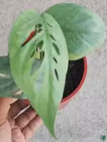 Recieved the plant within 2-3 days, a healthy and wellpacked plant that I am sure will thrive. It already has tiny fenestrations. Repotted into a mix of worm castings, cocopeat and pumice. However, I only wish that there was more than one young plant in the pot, 2 would have been great. Can't complain though since the plant is well rooted, and I can propagate soon to make the plant bushier. Pot is from amazon, blue handpainted leaves for Cebu Blue!