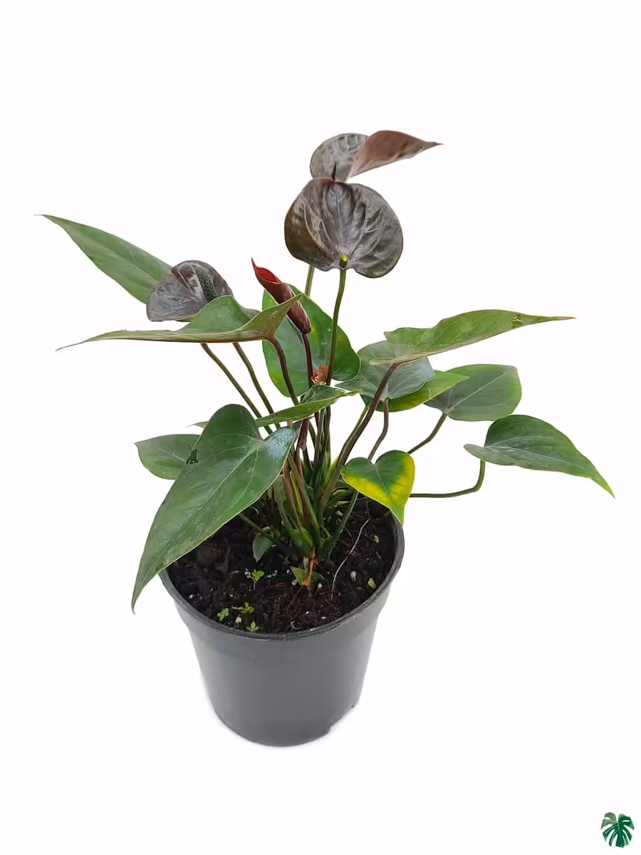 - Known As: Flowering Anthurium Black, Black Flamingo Lily, Painted Anthurium, Flamingo Flower, Tailflower, Painter’s Palette, Laceleaf