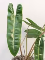 The beautiful elongated leaves of Philodendron Billietiae are leathery with wavy edges. A deep groove runs down the length of the leaf which adds some texture and definition which adds to its modern look. The branching habit of the foliage creates a space-filling display that will be a fantastic focal point or feature to a room. The large angular dark green leaves droop gracefully from a central stem.