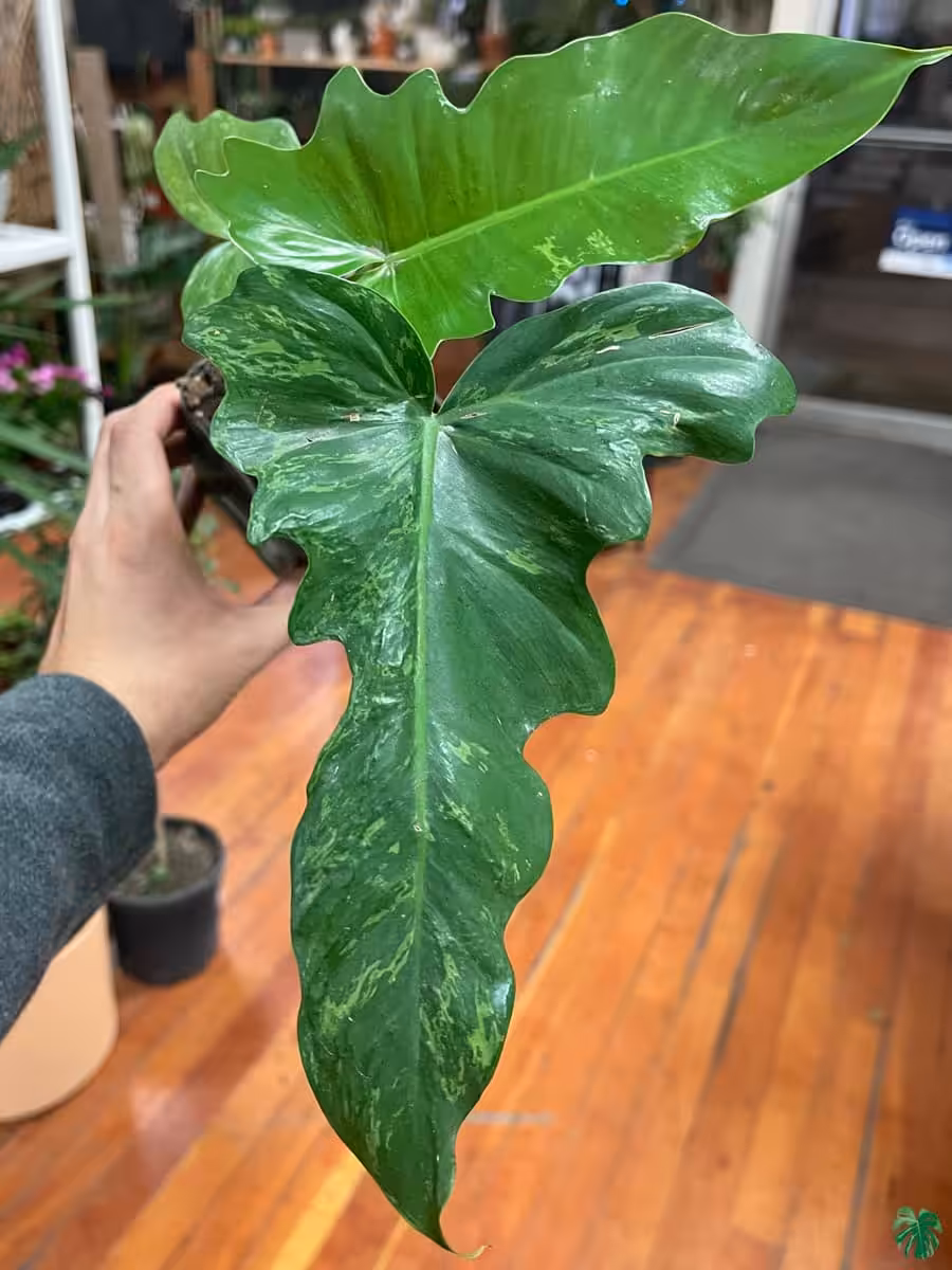 Philodendron Golden Dragon, also known as Philodendron Lime Fiddle or Philodendron Camouflage, a truly unique and rare plant! You rarely come across the Philodendron Golden Dragon. It’s a fast climbing philodendron with gold mottled leaf. The mottling may come and go, however this philodendron is well worth growing for its large mask-like deep green foliage.