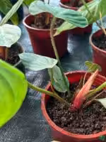 Philodendron Nangaritense is very popular amongst aroid lovers. Its foliage opens up a bronzish pink which darkens to green as it matures. The leaf blade is bulbs between the veins and has a red fuzzy petiole. Its fuzzy petioles have a bumpy texture which is unique amongst Philodendrons. This species exhibits more of a scrambling growth habit like Gloriosum as opposed to vining like Verrucosum.