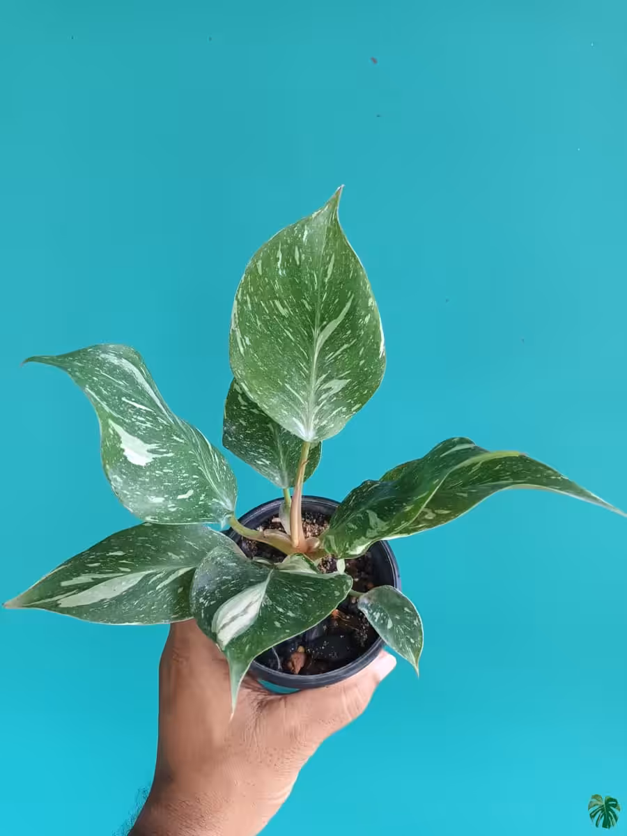 The Philodendron White Knight Marble is a truly unique plant, characterized by deep green, heart-shaped leaves with attractive white-marble variegation. It is one of the most rare and desired tropical houseplants and it’s easy to see why. This is a unique addition to your houseplant collection. The dark purple stems create a strong contrast against the vibrant green leaves with their white variegation. The Philodendron White Knight Marble feels particularly comfortable in a bright place without direct sunlight. This is where the chances of new variegated leaves are greatest.