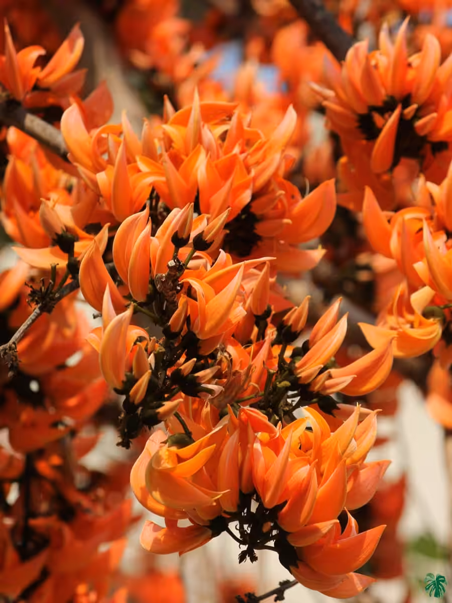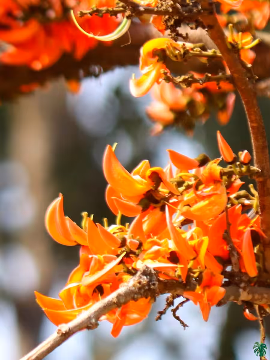 Butea Monosperma is a species of Butea native to tropical and sub-tropical parts of South Asia and Southeast Asia. It is also known as flame of the forest, dhak, palash, and bastard teak. In its native habitat, most of the rain is received during the monsoon season, while the autumn and summer months are generally dry. The tree is very drought resistant and frost hardy, although the leaves turn white and fall off.