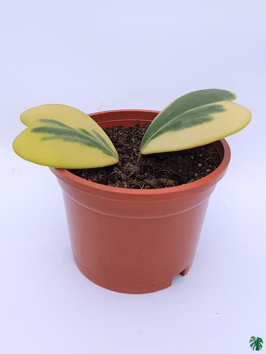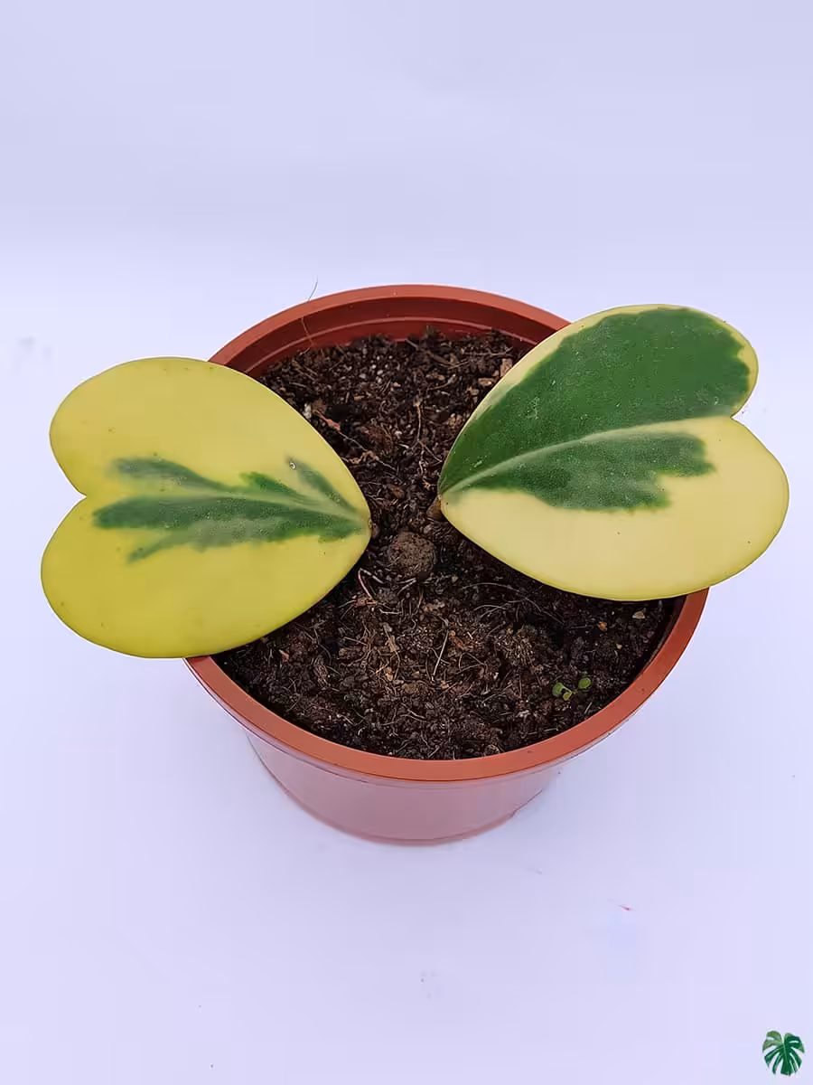 This Sweetheart Hoya Variegated 2 Leaves is commonly recognized as the Variegated Love Leaf plant with 2 leaves because of its heart shaped leaves.