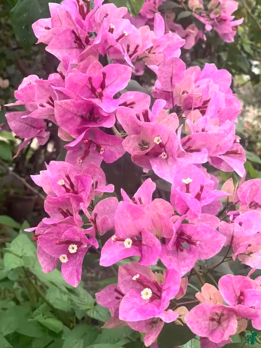 What many people think of as the blooms of bougainvillea aren’t actually blooms at all. The showy paper-like structures are a modified leaf called a bract. So the coloruful parts you see when you look at a bougainvillea are actually the leaves, not petals! These bracts hide the actual flowers inside, which are small and trumpet-shaped in whites and yellows. The showy bracts are typically found on new growth, with the showiest display following their winter dormancy.