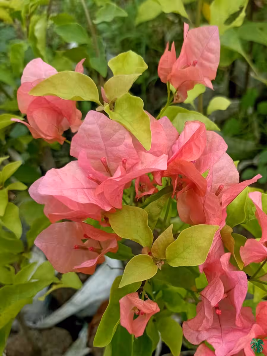 What many people think of as the blooms of bougainvillea aren’t actually blooms at all. The showy paper-like structures are a modified leaf called a bract. So the coloruful parts you see when you look at a bougainvillea are actually the leaves, not petals! These bracts hide the actual flowers inside, which are small and trumpet-shaped in whites and yellows. The showy bracts are typically found on new growth, with the showiest display following their winter dormancy.